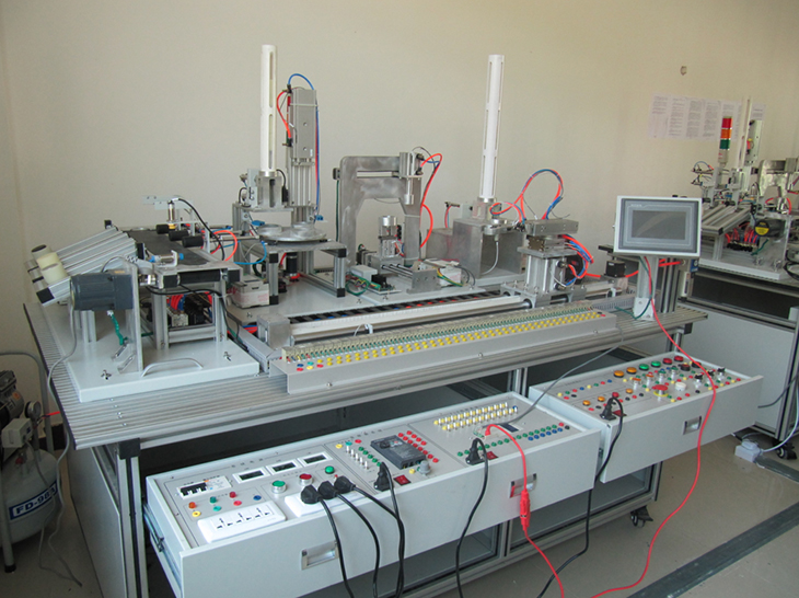 機(jī)電一體化技術(shù)實(shí)訓(xùn)設(shè)備是指機(jī)械技術(shù)、電工電子技術(shù)、微電子技術(shù)、信息技術(shù)、傳感器技術(shù)、接口技術(shù)、信號(hào)變換技術(shù)等多種技術(shù)進(jìn)行有機(jī)地結(jié)合,并綜合應(yīng)用到實(shí)際中去的技能實(shí)訓(xùn)綜合技術(shù),現(xiàn)代化的自動(dòng)生產(chǎn)設(shè)備幾乎可以說都是機(jī)電一體化的設(shè)備。自動(dòng)化生產(chǎn)線實(shí)訓(xùn)考核系統(tǒng),可以培養(yǎng)和提高學(xué)生專業(yè)綜合能力,是一種重要的實(shí)訓(xùn)設(shè)備。自動(dòng)化生產(chǎn)線實(shí)訓(xùn)系統(tǒng)、基于PLC技術(shù)的自動(dòng)化生產(chǎn)線實(shí)訓(xùn)考核系統(tǒng),可以培養(yǎng)和提高學(xué)生專業(yè)綜合能力,是一種重要的實(shí)訓(xùn)設(shè)備。自動(dòng)化生產(chǎn)線實(shí)訓(xùn)系統(tǒng)整體包括自動(dòng)供料、檢測(cè)傳輸、檢測(cè)加工、自動(dòng)裝配、自動(dòng)分揀等工序,很好的將機(jī)械技術(shù)、微電子技術(shù)、電工電子技術(shù)、傳感測(cè)試技術(shù)、接口技術(shù)、信息變換技術(shù)、網(wǎng).絡(luò)通信技術(shù)等多種技術(shù)有機(jī)地結(jié)合。該系統(tǒng)中自動(dòng)分揀站的設(shè)計(jì)過程,包括系統(tǒng)硬件設(shè)計(jì)、PLC控制設(shè)計(jì)和程序設(shè)計(jì)方法,F(xiàn)代化的自動(dòng)生產(chǎn)設(shè)備的最大特點(diǎn)是它的綜合性和系統(tǒng)性,在這里,機(jī)械技術(shù)、微電子技術(shù)、電工電子技術(shù)、傳感測(cè)試技術(shù)、接口技術(shù)、信息變換技術(shù)、網(wǎng)絡(luò)通信技術(shù)等多種技術(shù)有機(jī)地結(jié)合,并綜合應(yīng)用到生產(chǎn)設(shè)備中:而系統(tǒng)性指的是,生產(chǎn)線的傳感檢測(cè)、傳輸與處理、控制、執(zhí)行與驅(qū)動(dòng)等機(jī)構(gòu)在微處理單元的控制下協(xié)調(diào)有序地工作,有機(jī)地融合在一起?删幊绦蚩刂破(PLC)以其高抗干擾能力、高可靠性、高性能價(jià)格比且編程簡(jiǎn)單而廣泛地應(yīng)用在現(xiàn)代化的自動(dòng)生產(chǎn)設(shè)備中,擔(dān)負(fù)著生產(chǎn)線的大腦一微 處理單元的角色。因此,培養(yǎng)掌握機(jī)電一體化技術(shù),掌握PLC技術(shù)及PLC網(wǎng)絡(luò)技術(shù)的技術(shù)人材是當(dāng)務(wù)之急。而一套基于PLC技術(shù)的自動(dòng)化生產(chǎn)線實(shí)訓(xùn)考核設(shè)備可以模擬一個(gè)與實(shí)際生產(chǎn)情況+分接近的控制過程,使學(xué)習(xí)者得到一個(gè)非常接近于實(shí)際的教學(xué)設(shè)備環(huán)境,從而縮短了理論教學(xué)與實(shí)際應(yīng)用之間的距離。自動(dòng)分揀站需完成對(duì)上一單元送來的已加工、裝配的工件進(jìn)行分揀。使不同顏色的工件從不同的料槽分流的功能。當(dāng)輸送站送來工件放到傳送帶上并為入料口光電傳感器檢測(cè)到時(shí),即啟動(dòng)變頻器,工件開始送入分揀區(qū)進(jìn)行分揀。上海碩博弘揚(yáng)大國(guó)工匠精神, 發(fā)展職業(yè)教育,應(yīng)用教學(xué)設(shè)備,為企業(yè)培養(yǎng)高技能人才,而專業(yè)生產(chǎn):光機(jī)電一體化(自動(dòng)生產(chǎn)線)實(shí)訓(xùn)裝置、灌裝自動(dòng)化生產(chǎn)線實(shí)訓(xùn)裝置、工業(yè)自動(dòng)生產(chǎn)線實(shí)訓(xùn)裝置 、工業(yè)控制模擬實(shí)訓(xùn)裝置 、機(jī)電一體化組合實(shí)訓(xùn)平臺(tái) 、機(jī)電一體化綜合實(shí)訓(xùn)考核裝置、自動(dòng)化生產(chǎn)安裝與調(diào)試實(shí)訓(xùn)裝置 、光機(jī)電一體化高速分揀實(shí)訓(xùn)系統(tǒng) 、典型機(jī)電設(shè)備安裝與控制實(shí)訓(xùn)裝置、模塊式柔性自動(dòng)環(huán)形生產(chǎn)線實(shí)驗(yàn)系統(tǒng)(帶機(jī)器人工程型)、立體停車庫實(shí)物教學(xué)實(shí)驗(yàn)裝置、機(jī)電一體化柔性生產(chǎn)線加工實(shí)訓(xùn)系統(tǒng)(5站)、網(wǎng)絡(luò)型模塊式柔性自動(dòng)化生產(chǎn)線實(shí)驗(yàn)系統(tǒng)、模塊式柔性自動(dòng)環(huán)形生產(chǎn)線實(shí)驗(yàn)系統(tǒng)(工程型)、柔性生產(chǎn)制造實(shí)驗(yàn)系統(tǒng)(工程型)、現(xiàn)代物流倉儲(chǔ)自動(dòng)化實(shí)驗(yàn)系統(tǒng)、運(yùn)動(dòng)實(shí)訓(xùn)裝置、循環(huán)搬運(yùn)自動(dòng)控制實(shí)訓(xùn)裝置、平面雙軸運(yùn)行控制實(shí)訓(xùn)裝置、工業(yè)機(jī)械手實(shí)訓(xùn)裝置、物料分揀實(shí)訓(xùn)裝置、機(jī)械手實(shí)訓(xùn)裝置 、立體倉庫實(shí)訓(xùn)裝置、十字路口交通燈實(shí)訓(xùn)系統(tǒng)、機(jī)電液氣一體化綜合實(shí)訓(xùn)裝置、光機(jī)電一體化高速分揀實(shí)訓(xùn)系統(tǒng)、步進(jìn)伺服控制綜合實(shí)訓(xùn)平臺(tái)、光機(jī)電氣一體化控制實(shí)訓(xùn)系統(tǒng)、 光機(jī)電一體化綜合實(shí)訓(xùn)考核裝置、光機(jī)電一體化實(shí)訓(xùn)考核裝置、光機(jī)電一體化實(shí)訓(xùn)考核裝置、光機(jī)電氣一體化控制實(shí)訓(xùn)系統(tǒng)、自動(dòng)生產(chǎn)線拆裝與調(diào)試實(shí)訓(xùn)裝置、柔性自動(dòng)化生產(chǎn)線實(shí)訓(xùn)系統(tǒng)。