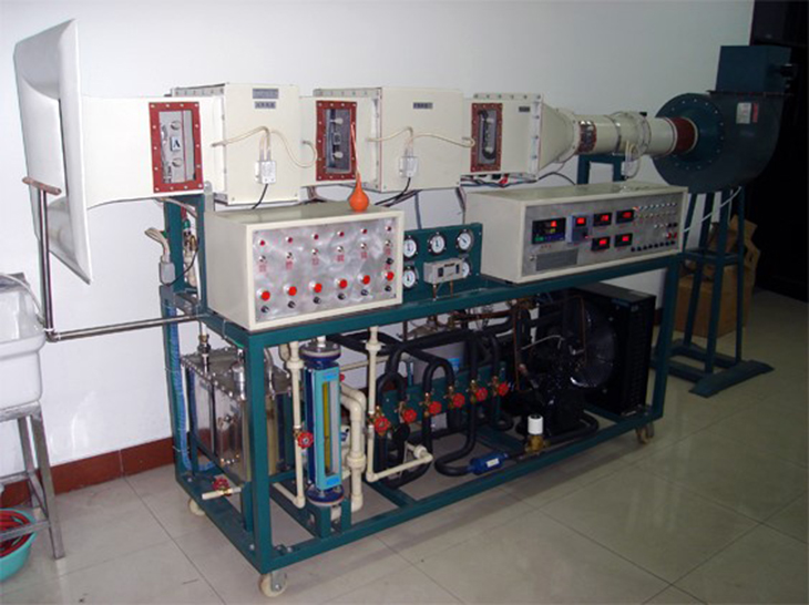 本裝置集直流空調(diào),制冷壓縮機性能,制冷熱泵,表冷器性能,加熱器性能于一體,可進行空氣的加熱,加濕,冷卻,干燥,蒸發(fā)器,冷凝器進行換相,可測出各點溫度、濕度、壓力、風量、水流量及功率,計算出制冷量、功率、制冷系數(shù)、效率、并進行熱平衡計算。