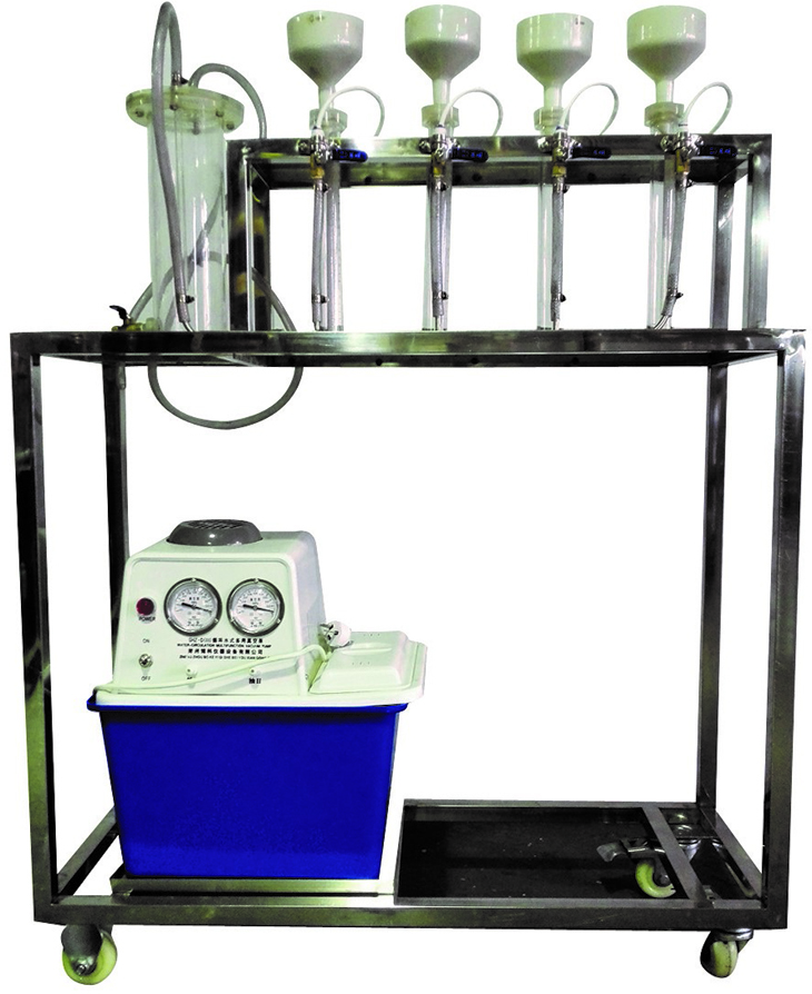 真空泵、計(jì)量筒、緩沖罐、布氏漏斗、濾紙、高壓氣管、排空閥、不銹鋼框架。