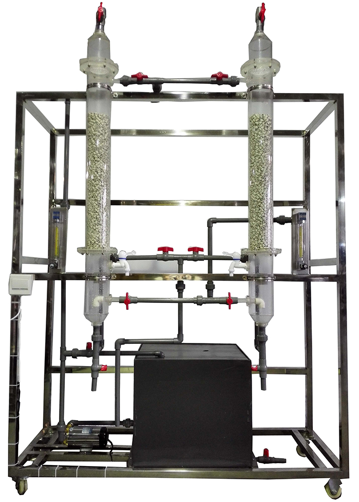 反應塔、穩(wěn)流閥、臭氧發(fā)生器、低噪聲充氧泵、瓷拉西環(huán)填料、液體流量計、氣體流量計、配水箱、水泵、電路控制系統(tǒng)、不銹鋼可移動框架、控制屏。
