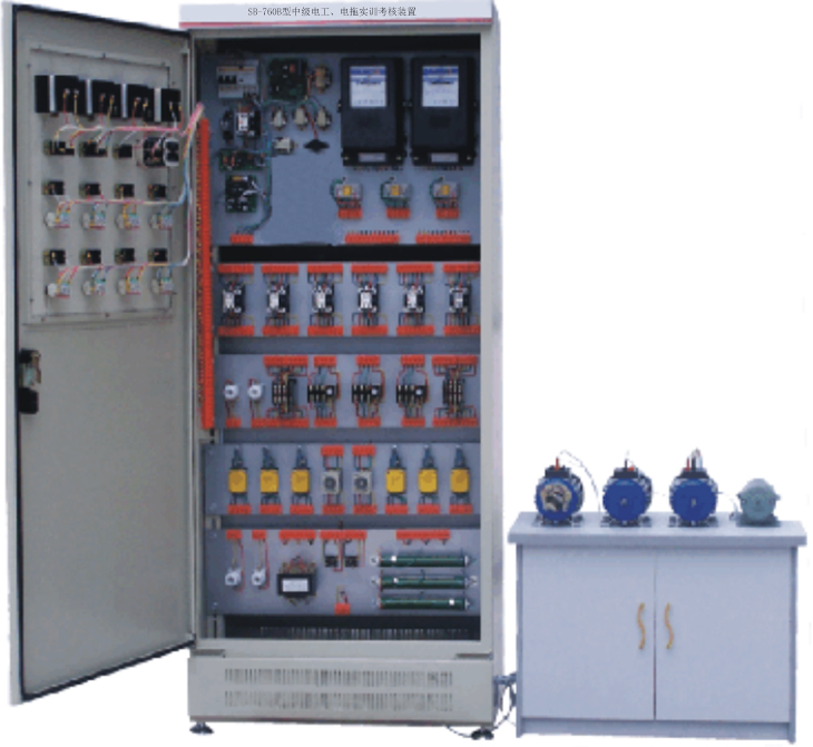 中級電工、電拖實訓考核裝置是按照勞動社會保障部頒發(fā)的“工人技術(shù)等級標準”和“職業(yè)技能鑒定規(guī)范”的內(nèi)容要求,根據(jù)初級電工培訓考核的實際情況而設(shè)計的新一代集培訓學習、理論驗證、實際操作能力、考核鑒定于一體的多功能柜式設(shè)備。整臺設(shè)備以標準的電氣控制柜為主柜,利用柜體的雙面空間,布置電器 及配套實驗器材,能完成初級電工考核鑒定中的電力拖動控制與照明電路的實操項目,該電工、電拖實訓考核裝置堅持理論聯(lián)系實際的原則,突出技能訓練,注重針對性、實用性、科學性,經(jīng)全國多家職業(yè)技能訓練中心、職校、技校使用證明,該柜體設(shè)計合理、實操方便,占地面積少。為延長電器的使用壽命,各電器的接點都與接線端子相連,再讓學生在接線端子上接線,連接電機、電器來完成各項控制實驗,有效降低材料消耗,延長使用壽命。該套設(shè)備適用于各勞動職業(yè)技能鑒定部門,同時適應(yīng)各大、中專、技校、職校初級電工、電拖專業(yè)教學與實訓考核。