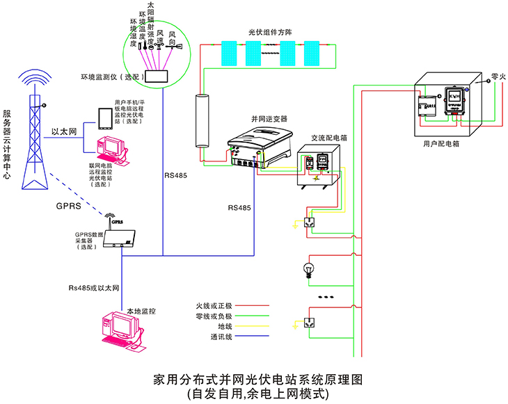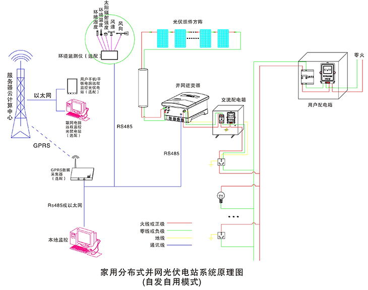 在晴朗的白天,裝在屋頂上的光伏組件發(fā)出的直流電經(jīng)過并網(wǎng)逆變器逆變成與電網(wǎng)同頻率同相位的單相交流電給負載進行供電,在夜晚或陰雨天等太陽光照不足的情況下,系統(tǒng)處于待機狀態(tài),負載用電全部來自電網(wǎng)。您可以通過系統(tǒng)監(jiān)控軟件來實時查看系統(tǒng)的運行狀態(tài)和故障信息,或者是選配遠程通訊數(shù)據(jù)采集器,將系統(tǒng)工作數(shù)據(jù)通過GPRS或以太網(wǎng),傳輸?shù)侥氖謾C、平板電腦或任意一臺聯(lián)網(wǎng)的電腦,以便于您遠程實時掌控電站的信息。