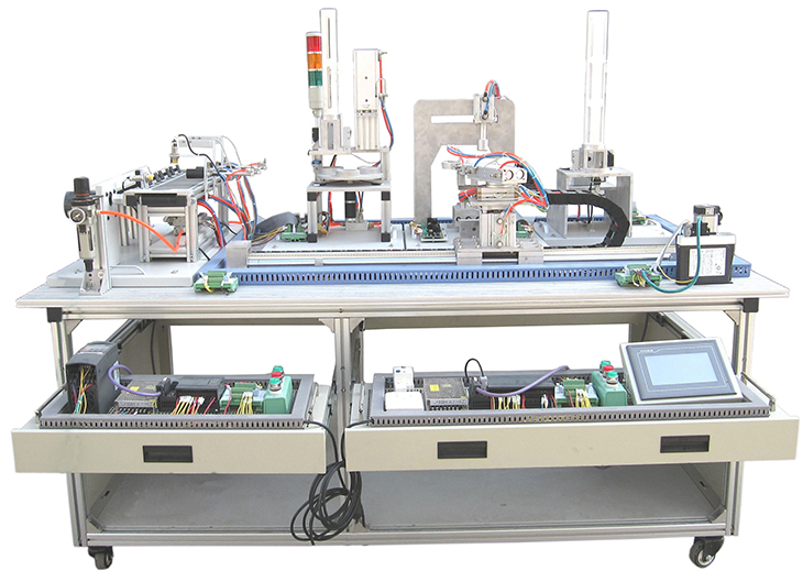 光機(jī)電氣一體化控制實訓(xùn)平臺由由鋁合金導(dǎo)軌式實訓(xùn)臺、典型的機(jī)電一體化設(shè)備的機(jī)械部件、PLC模塊、變頻器模塊、按鈕模塊、電源模塊、模擬生產(chǎn)設(shè)備實訓(xùn)模塊、接線端子排和各種傳感器、計算機(jī)等組成。整體結(jié)構(gòu)采用開放式和拆裝式,實訓(xùn)裝置用于機(jī)械部件組裝,可根據(jù)現(xiàn)有的機(jī)械部件組裝生產(chǎn)設(shè)備,也可添加機(jī)械部件組裝其他生產(chǎn)設(shè)備,使整個裝置能夠靈活的按教學(xué)或競賽要求組裝具有生產(chǎn)功能的機(jī)電一體化設(shè)備。模塊采用標(biāo)準(zhǔn)結(jié)構(gòu)和抽屜式模塊放置架,互換性強(qiáng);按具有生產(chǎn)性功能和整合學(xué)習(xí)功能的原則確定模塊內(nèi)容,使教學(xué)或競賽時可方便的選擇需要的模塊。設(shè)備需完全符合電工電子全國職業(yè)技能大賽所要求,同時還要求具有可拓展功能,可以組成更加大型的生產(chǎn)模擬系統(tǒng),以配合各個用戶學(xué)校不同層次,不同專業(yè)的教學(xué)及培訓(xùn)要求。