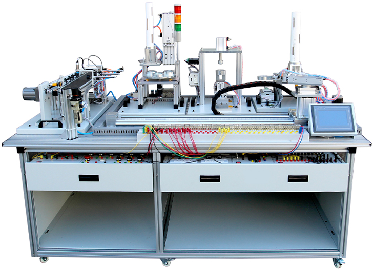 一體化自動生產(chǎn)線系統(tǒng)實(shí)訓(xùn)裝置綜合應(yīng)用了多種技術(shù)知識,有氣動控制技術(shù)、機(jī)械技術(shù)、傳感器技術(shù)、PLC控制技術(shù)、步進(jìn)電動機(jī)位置控制和變頻技術(shù)等,模擬一個與實(shí)際生產(chǎn)情況十分接近的控制過程,可以提高學(xué)生的綜合技能。