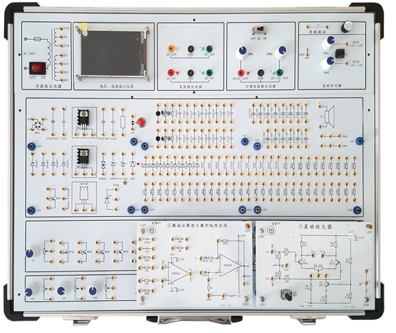 創(chuàng)新型模塊化模擬電路實驗箱由全鋁合金箱體、高性能線性電源和實驗電路板組成。其中實驗電路既可以采用固定功能模塊方式,也可以自行搭建實驗電路,電路原理和元器件符號清晰,實驗用元器件全部焊裝在線路板的反面,安全可靠,不易損壞。本實驗箱適用于本專院校所有電類和非電類專業(yè)《模擬電子技術》、《電子線路》等課程的實驗教學。