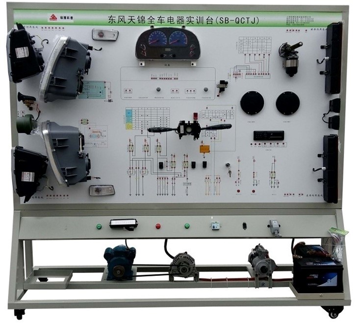 該設備采用全新 東風EQ1120GA2 柴油機整車電器實物為基礎,充分展示汽車儀表系統(tǒng)、燈光系統(tǒng)、雨刮系統(tǒng)、喇叭系統(tǒng)、發(fā)動機電器系統(tǒng)、起動系統(tǒng)和充電系統(tǒng)等汽車電器各系統(tǒng)的組成結構和工作過程。