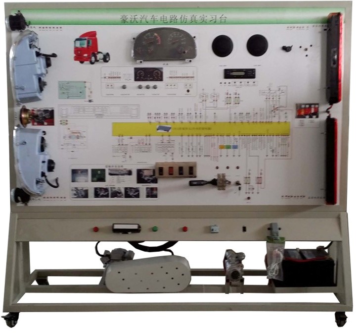 全車電器電路原理及操控實訓(xùn)設(shè)備采用全新豪沃ZZ1167柴油機整車電器實物為基礎(chǔ),充分展示汽車儀表系統(tǒng)、燈光系統(tǒng)、雨刮系統(tǒng)、喇叭系統(tǒng)、發(fā)動機電器系統(tǒng)、起動系統(tǒng)和充電系統(tǒng)等汽車電器各系統(tǒng)的組成結(jié)構(gòu)和工作過程。