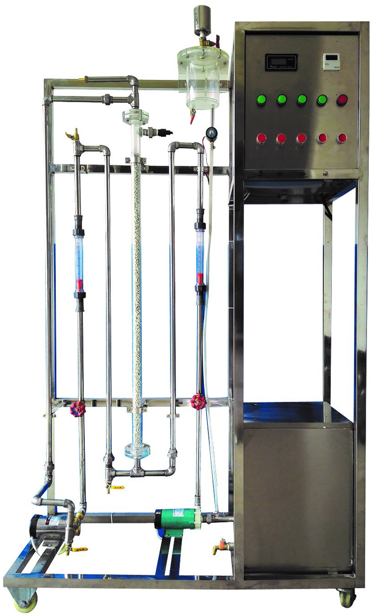 1、運行環(huán)境:溫度0-40℃,相對濕度:≤90%RH,電源:電壓:220V;電流:15A。 2、管式反應器:直徑φ35mm,長度1200mm;填料類型及尺寸:拉西環(huán),Ф4mm。 3、水泵:微型磁力泵,流量12L/min,揚程6m,功率30W。 4、循環(huán)泵:流量12L/min,揚程10m,功率90W。 5、水流量:6-60L/h和25~250L/h,液體轉(zhuǎn)子流量計,觀察、控制流量。 6、電導率儀:數(shù)字電導率檢測儀,測定示蹤劑的含量。 7、LWB電磁閥(24v)和三通閥控制切換示蹤劑,數(shù)顯計測器控制示蹤劑加入量。 8、各項操作及顯示、調(diào)節(jié)、控制全在控制屏面板進行。 9、框架為304不銹鋼材質(zhì),結構緊湊,外形美觀,流程簡單、操作方便。 10、外形尺寸:1200×500×1600mm(長×寬×高),外形為可移動式設計,帶3寸雙剎車輪。 |