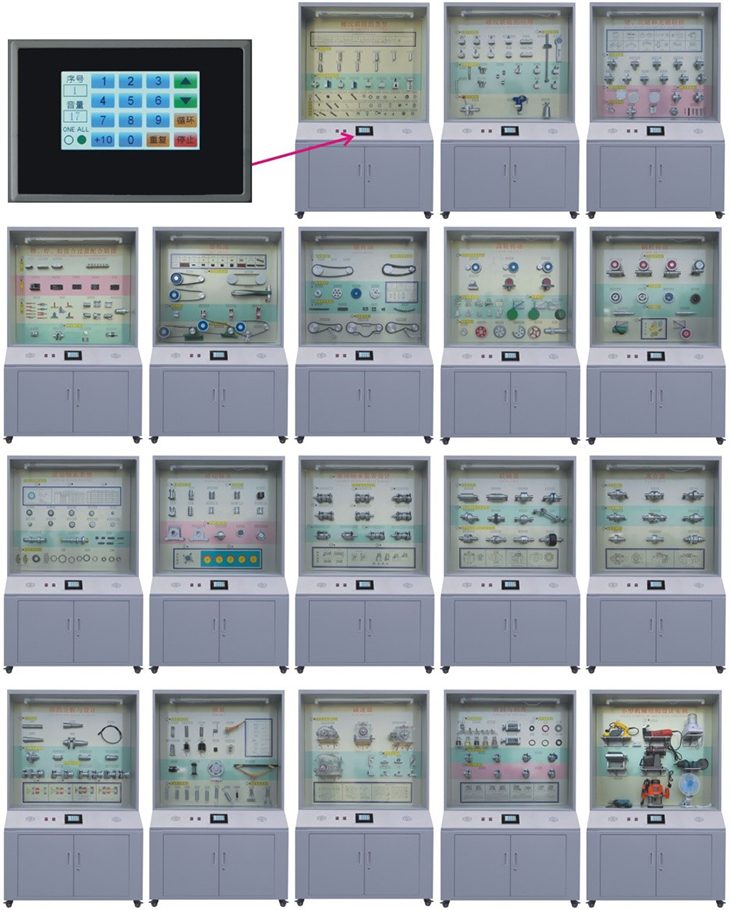 機械設計零件陳列柜,是根據(jù)機械設計(零件)課程基本要求設計制造的實驗設備。陳列柜通過機械零件模型或實物,配合相應的圖文資料,形象地展示與解說機械設計的基本知識,加強學生對通用機械零件的類型、結構特點及其設計的感性認知,為進一步學習機械設計奠定基礎。