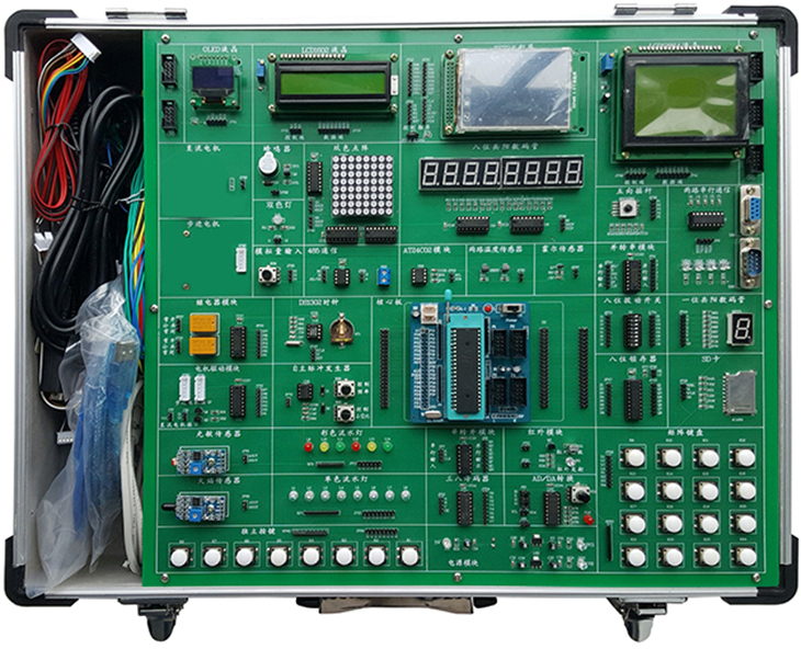單片機實訓(xùn)箱適用于研究生、本科、大專、職業(yè)技術(shù)學(xué)院及其中等專業(yè)技術(shù)學(xué)校的信息通信技術(shù)、應(yīng)用電子技術(shù)、機電一體化、微機應(yīng)用、數(shù)控技術(shù)、自動化、計算機原理與應(yīng)用、儀表及控制、汽車工程等電子應(yīng)用和微機控制的相關(guān)專業(yè)。是《MCS-51 單片機原理與接口》《C8051 嵌入式單片機控制技術(shù)》《自動化控制》《CPLD/FPGA 技術(shù)》等課程教學(xué)的最佳配套實驗設(shè)備。