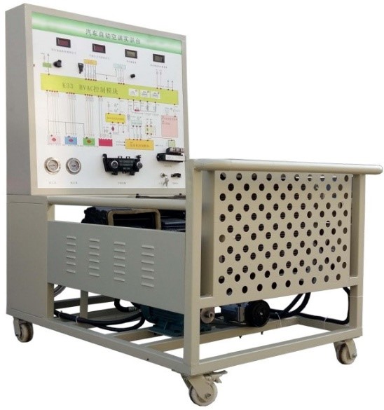 2.由三相電機(jī)做為動(dòng)力源,帶動(dòng)空調(diào)壓縮機(jī)工作。操作空調(diào)控制面板,可真實(shí)演示汽車(chē)自動(dòng)空調(diào)系統(tǒng)的工作過(guò)程以及工作原理。