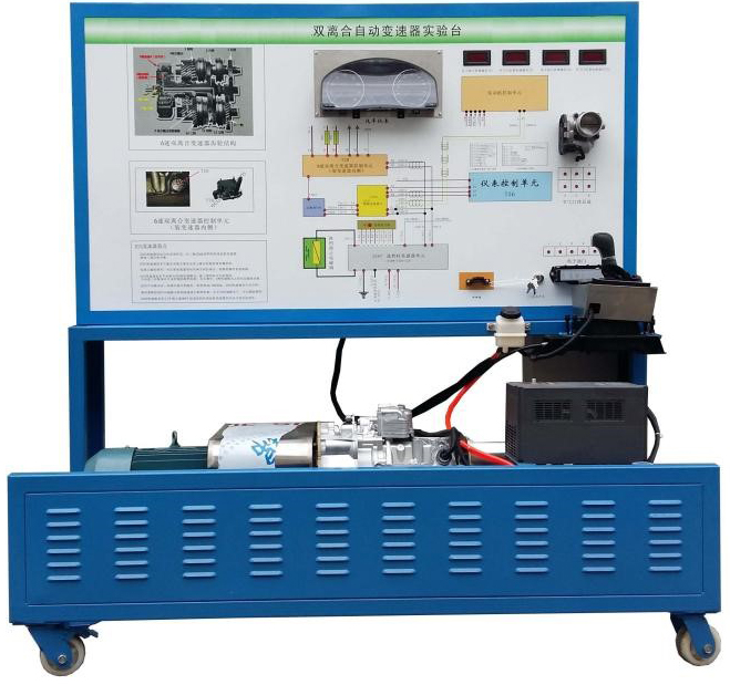 該設備采用翻新邁騰B8L 2021款電控雙離合器自動變速器總成為基礎,可調(diào)速三相異步電動機做動力源,對雙離合器自動變速器進行檔位顯示、空檔起動、前進檔及倒檔運行等工況實踐操作。真實展示電控雙離合器自動變速器組成結(jié)構(gòu)和工作過程。