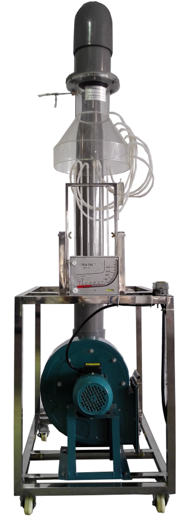 局部抽吸排風(fēng)罩、畢托管、壓差計、低噪音多翼風(fēng)機(jī)、管路、斜管微壓計、調(diào)節(jié)風(fēng)門、高度尺、不銹鋼實驗臺架。