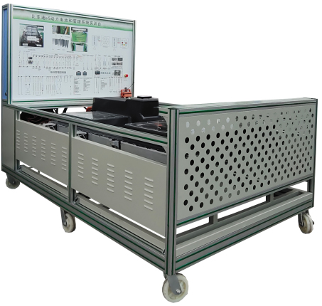 (比亞迪e5 EV300純電動(dòng)汽車) 鋰動(dòng)力電池組、電池管理系統(tǒng)BMS、BMS顯示屏(7寸觸摸屏)、維修開(kāi)關(guān)、輔助蓄電池(12V45AH)、高壓配電箱、漏電傳感器、車載充電機(jī)、國(guó)標(biāo)充電插座與充電槍、直流接觸器(包含充電繼電器、總正繼電器、總負(fù)繼電器、預(yù)充繼電器)、急停開(kāi)關(guān)與電源總開(kāi)關(guān)、一體化全鋁合金型材搭建的移動(dòng)臺(tái)架(1500×700×1700mm ,帶自鎖腳輪裝置,帶安裝檢測(cè)端子的原理面板1448×940mm)、故障考核系統(tǒng)、設(shè)備操作說(shuō)明書(shū)。