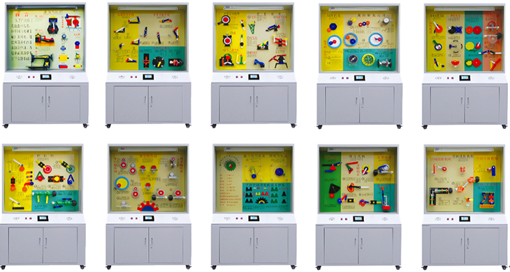 機械元件陳列柜是根據(jù)大、中專院校、技校、職業(yè)學校的機械原理教學大綱設(shè)計的電化教學設(shè)備。本陳列柜具有多功能語音播放控制系統(tǒng),語音解說同步演示,采用單獨驅(qū)動由電腦或電子設(shè)備控制運轉(zhuǎn)演示,可由遙控控制順序自動運行講解,又能根據(jù)教材、教學需要而遙控任意選擇還是單獨演示。模型材料采用進口有機板制造,板面附有必要的圖表和文字說明,演示形象逼真,運行可靠,制作工藝美觀,使用本陳列柜可提高教學效果,節(jié)約學時是一套現(xiàn)代化機械課程教學應用實驗室設(shè)備。