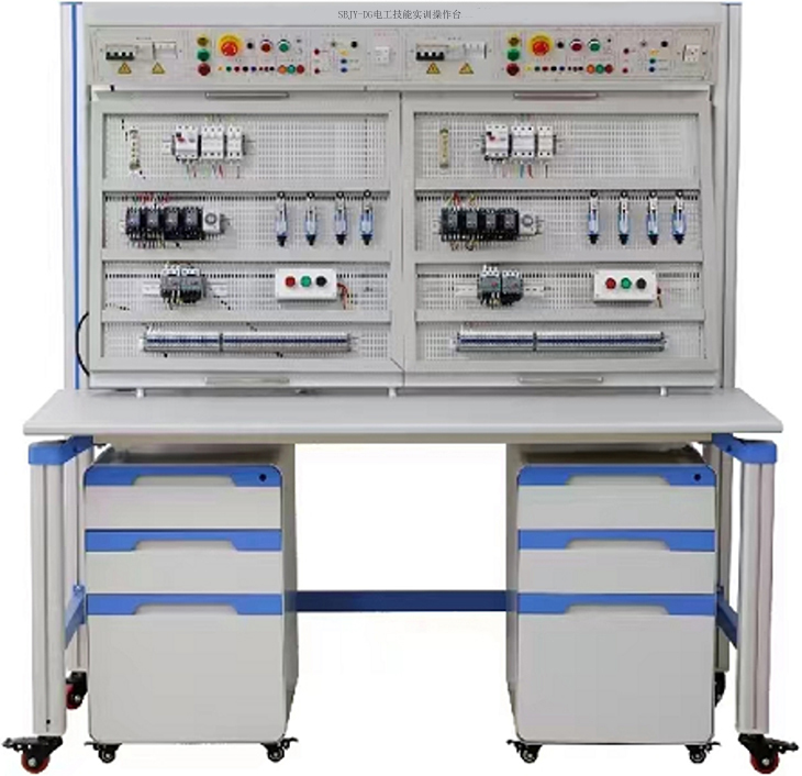 電氣安裝與維修實訓考核裝置是根據(jù)工廠電氣安裝和室內(nèi)電氣安裝等維修 電工和電氣安裝工實訓鑒定要求開發(fā)的一種通用實訓平臺。 適合于各類職業(yè)院校 和技工學校維修電工、 電氣安裝工、水電工等有電氣實訓要求的相關(guān)專業(yè)的作為 公共實訓平臺使用。 采用鋼制網(wǎng)孔板和鋼制專用型材組接而成,安裝有自鎖式腳輪,方便移動和使用。裝 置表面噴塑,色彩穩(wěn)重氣派。電氣安裝與維修實訓裝置設(shè)計高度以人站在一級人字梯即可方便操作的高度,既安 全又能使使用者感受到施工現(xiàn)場環(huán)境。 橫向、 叢向?qū)挾群线m, 可以模擬現(xiàn)場線路的轉(zhuǎn)向布置。
